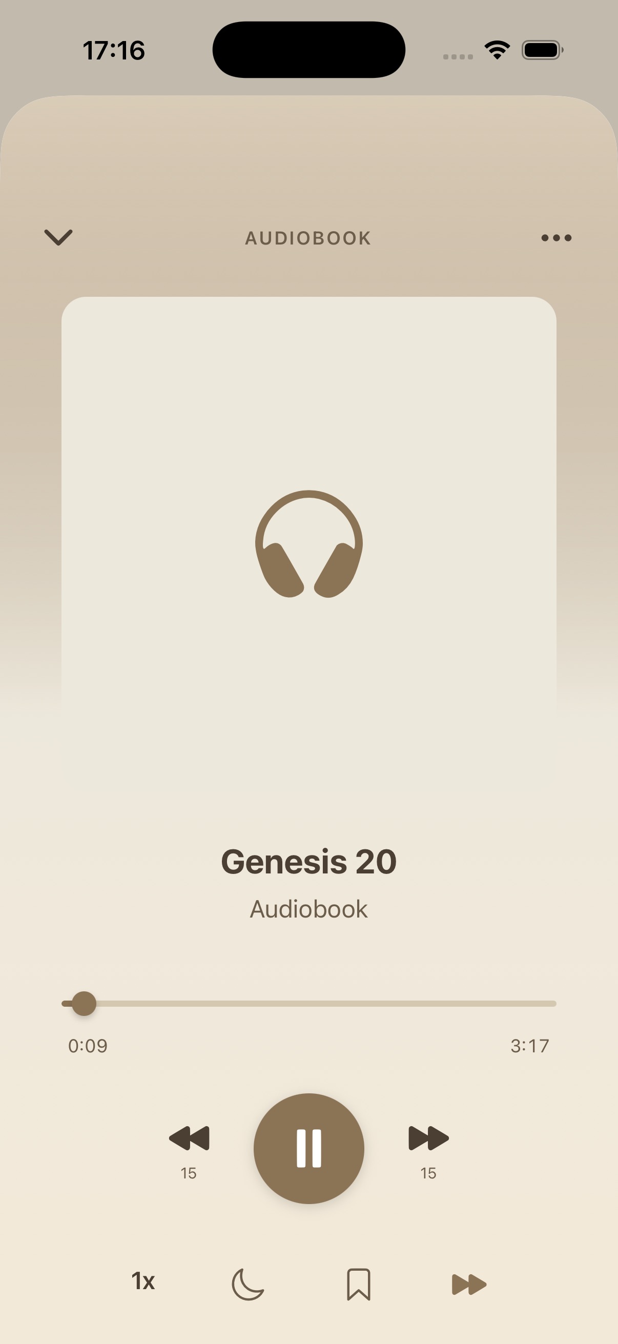 Most Bible apps use basic TTS that sounds robotic. Biblicast uses advanced AI narration engineered to sound warm, natural, and reverent — closer to a professional audiobook than a computer reading aloud.