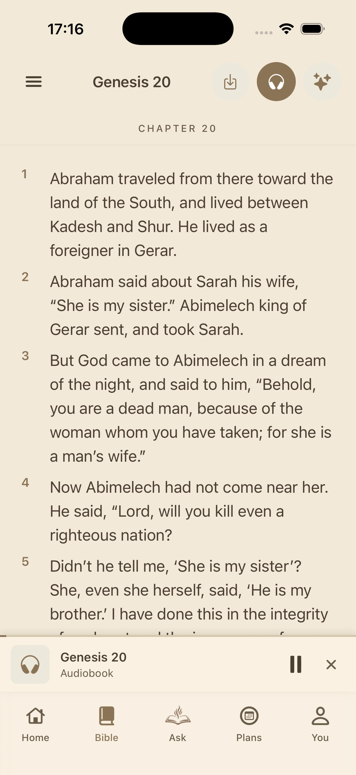 Not robotic text-to-speech. Biblicast uses warm, human-like narration that makes listening to Scripture a pleasure.